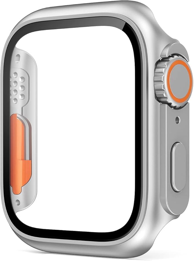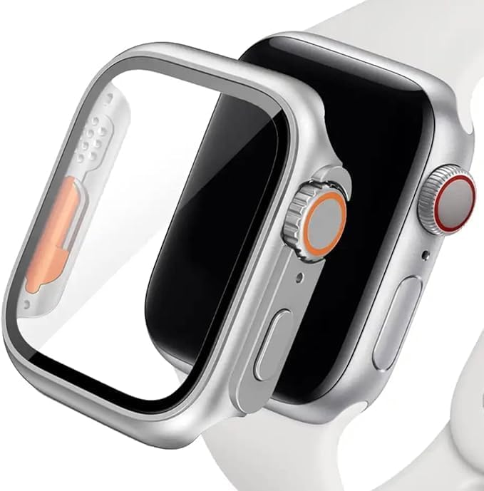 Nopatia - Protective Case for Apple Watch 41mm (1.61 Inch) Series 9 8 7 Waterproof Hard PC Case with Built-in HD Tempered Glass Screen Protector (Silver)