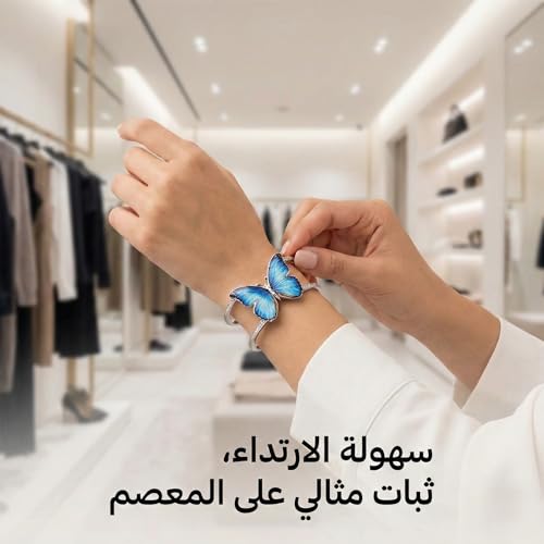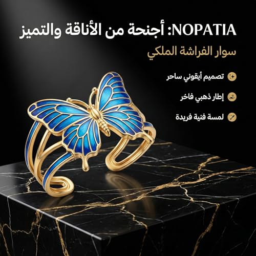 Nopatia - Royal Blue Butterfly Bracelet Bracelet Gold Open Hand Accessory with Attractive Art Detail - A Fashion Jewelry Piece That Accentuates Your Wrist in Every Appearance