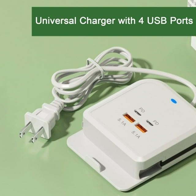 - 【Powerful 5.1A Power Output&4 Ports】This charging station converts one socket to a 5.1A total power station. Features 4 smart ports: 2 PD (Type-C) ports for fast and modern charging, and 2 USB-A ports for conventional devices. Smart chip allows you to charge 4 devices simultaneously at a high efficiency and intelligent distribution of current.