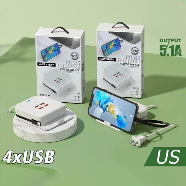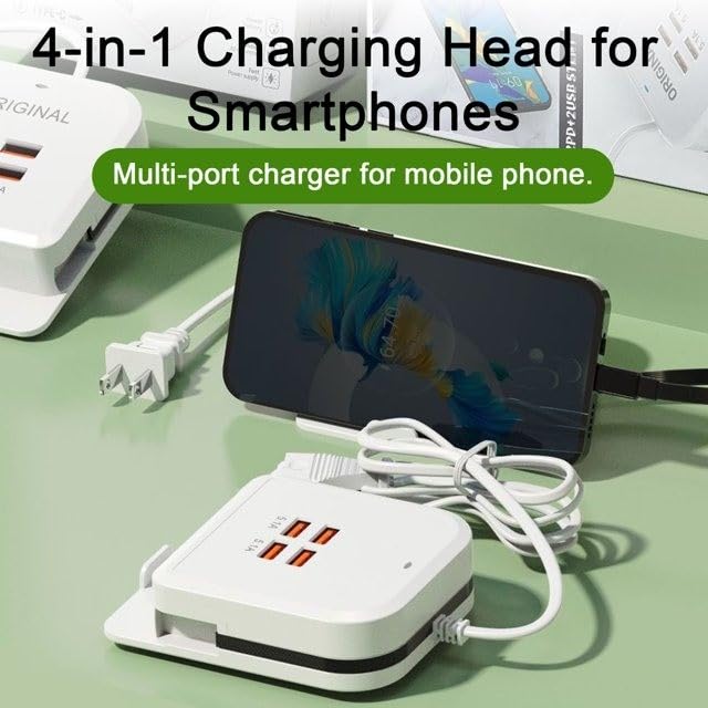 - 【PERFECT ORGANIZATION FOR YOUR OFFICE & TRAVEL 】 Instead of using 4 different charger heads that take up space and cause messes, this device combines all your needs into one compact unit with a long power cable. Its compact and light design makes it a perfect companion for travel, office, or place it beside the bed (comodino) to charge all your devices while you sleep.