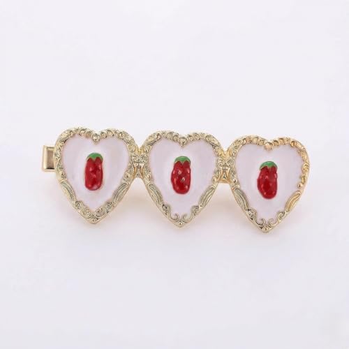 Nopatia - Stylish Strawberry Hearts Hair Clip Fashion and Attractive Hair Accessory - Classical and Decorated Hairpin in Fine Art Style