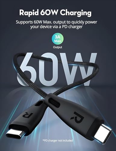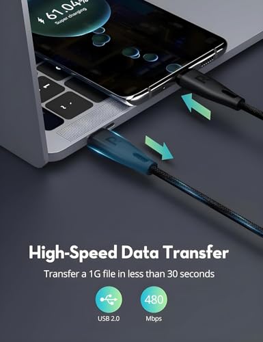 - 【60W FAST CHARGING】 Support Fast Charge (3.0) maximum output 20V/3A (60W). Capable of charging compatible with Samsung Galaxy S23 to 60% in only 30 minutes, or charging compatible with MacBook Air 13 inch to 100% in about 1.5 hours. Note: This is a type-C cable, please use the Type-C wall charger.