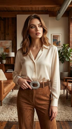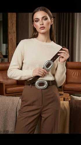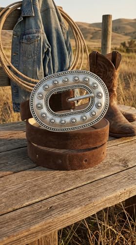 Nopatia - حزام خصر نسائي جلد من Nopatia بوهيمي ويسترن بتصميم حلقات عريضة، مزين بفتحات معدنية وإبزيم برونزي كبير، حزام فينتج كلاسيكي مثالي لتنسيق الفساتين والجينز والملابس لإضافة لمسة جمالية