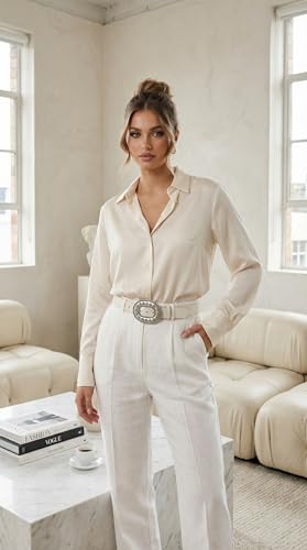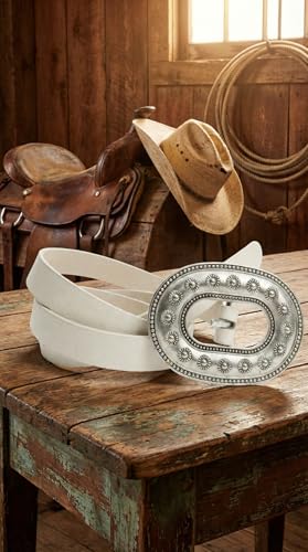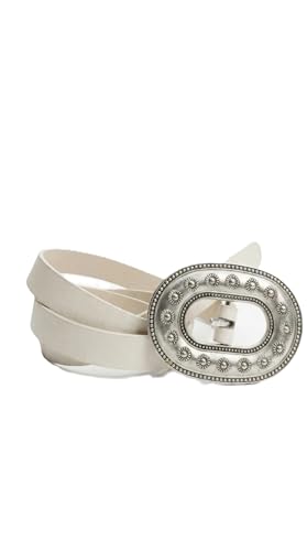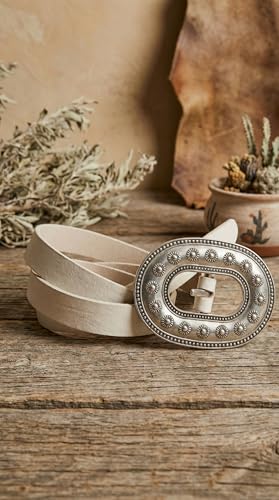 Nopatia - حزام نسائي جلد طبيعي أبيض من Nopatia بإبزيم معدني فضي بيضاوي منقوش ضخم تصميم ويسترن كلاسيكي بوهيمي للفساتين والجينز إكسسوار عصري أنيق للخصرهدية مثالية للنساء