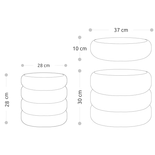 - Dimensions: Storage Pouf: Height 40 cm, Width 37 cm, Depth 37 cm, Interior Pouf: Height 30 cm, Width 32 cm, Depth 32 cm. Bowl capacity: 19 Litr
