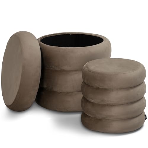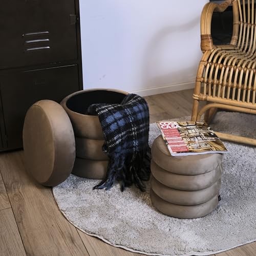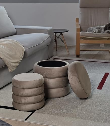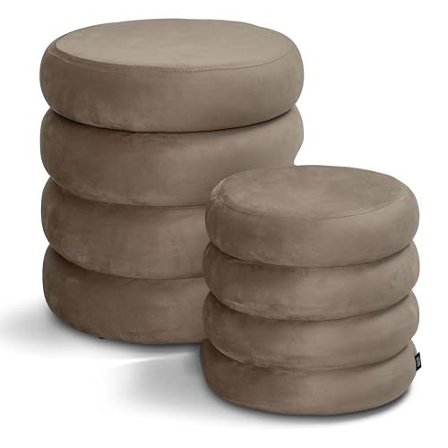 Norbe - Norbe | Set of 2 Poufs | Velvet Cylinder Stool Footrest Desk Dressing Table Makeup Armchair Children Bedroom or Living Room Footrest Bedside Armchair (Taupe, Set of 2 Poufs)