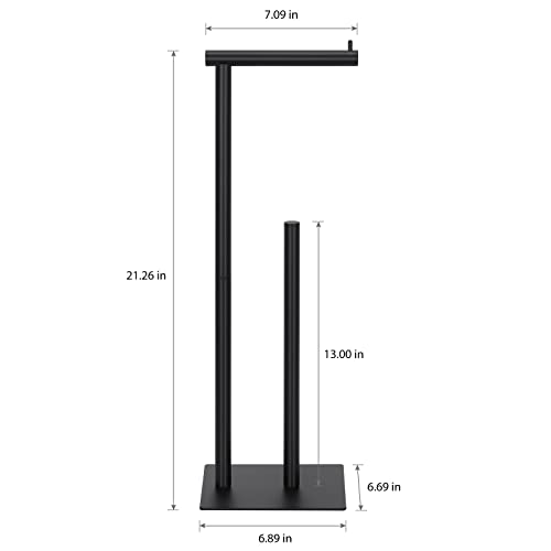 - 【حامل ورق تواليت عصري باللون الأسود】يعتمد حامل ورق مناديل التواليت المستقل الخاص بنا على موديل عصري وبسيط، بالإضافة إلى قاعدة مربعة، تم طلاء حامل بكرة ورق التواليت بنمط شامل، ويتميز بملمس أنيق وغني باللون الأسود المطفي.