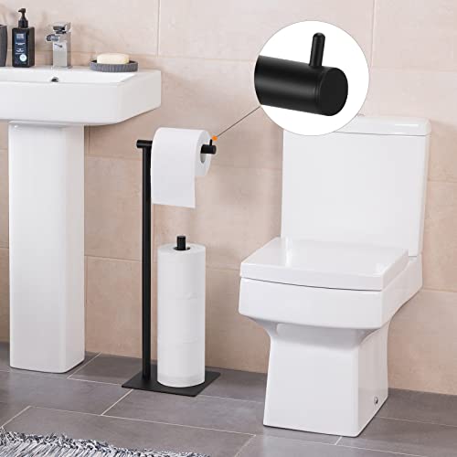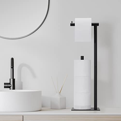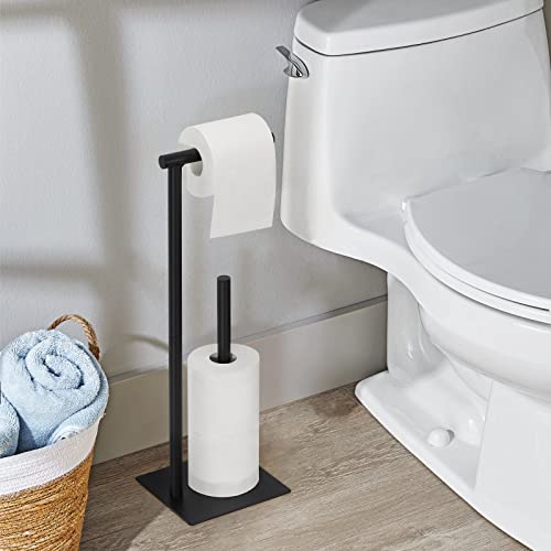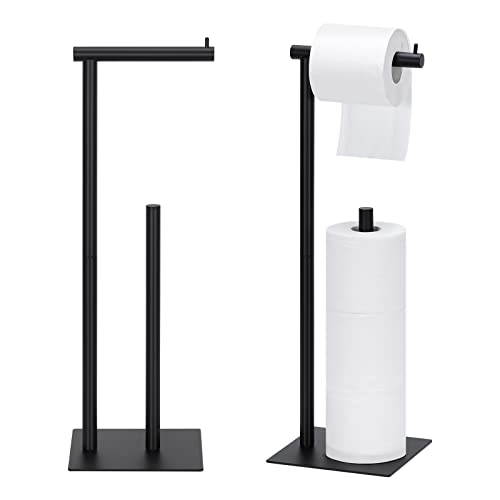 NORCEESAN - حامل ورق التواليت من نورسيسان، حامل ورق المناديل، موزع بكرات ورق التواليت، منظم قائم بذاته لورق المناديل، حامل تخزين ورق مناديل الحمام، حامل ورق التواليت الأرضي بقاعدة مربعة، قطعتين، لون أسود