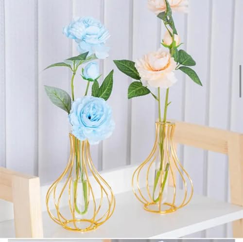 Generic - Nordic Glass Vases Home Decor Iron metal Frame Vase Flower Stand Flower Pot Metal Rack Bottle Ornament Plant Holder Vase for livingroom, office From FLAMINGO