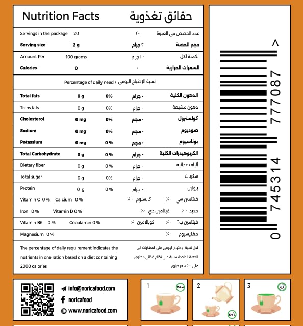 Norica - شاي زنجبيل طبيعي 100% ممزوج بعشب الليمون - من نوريكا، 20 كيس شاي