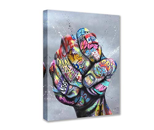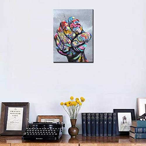 Walarky - Norse Decor Abstract Graffiti Picture Clenched Fist Painting Banksy Street Art Artwork for Man Cave 1 Panels Canvas Wall Art HD Prints Home Modern Decor Framed Giclee Ready to Hang(12''Wx16''H)