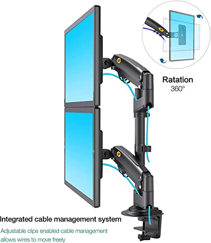 - ③ FULL-MOVEMENT MOUNT: With a wide range of motion, your monitor can be rotated and tilted effortlessly in any direction, Tilt angle is from -30° to +85°. Nb H180 max provides 360° horizontal rotation for you to work with comfort..With the NB H180, you can position your monitors on top of the bottom.