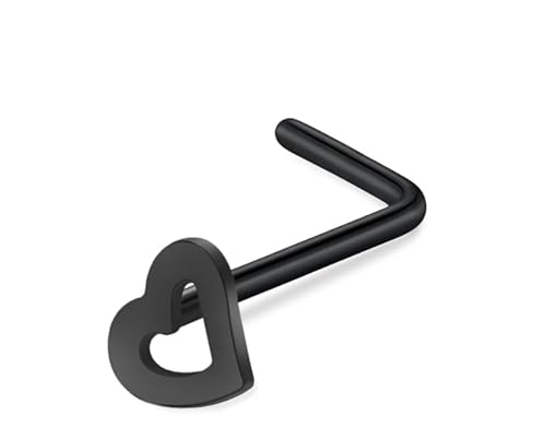 BIJOUX BEAUTIQUE - Nose Hollow Heart L-Shape Stud Piercing Jewelry - Black