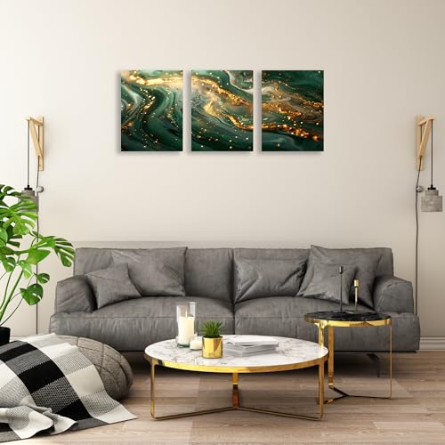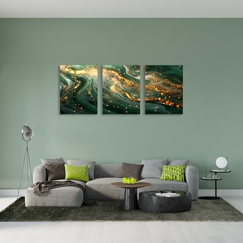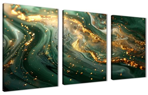 Nova Art - تابلوه جدارية كانفس مطبوع بتصميم عصري - تجريدي بالوان اخضر مع الذهبي وابيض - لتزيين حائط غرفة المعيشة وغرفة النوم والمطبخ وما إلى ذلك ديكور منزلي حديث من نوفا آرت. مقاس (30 سم × 40 سم × 3 قطع)