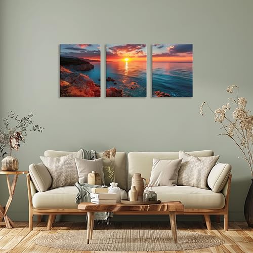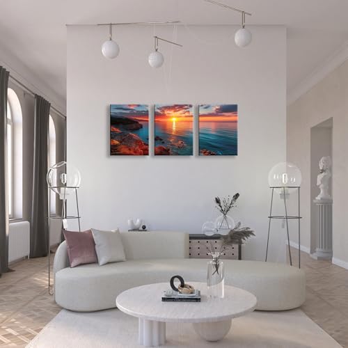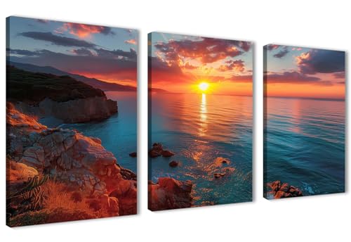 Nova Art - تابلوه كانفاس جدارية مطبوع بتصميم مشهد رائع من غروب الشمس الساحلي لتزيين حائط غرفة النوم والمعيشة والمكتب وما إلى ذلك ديكور منزلي حديث من نوفا آرت ، مقاس 30 سم × 40 سم × 3 قطع