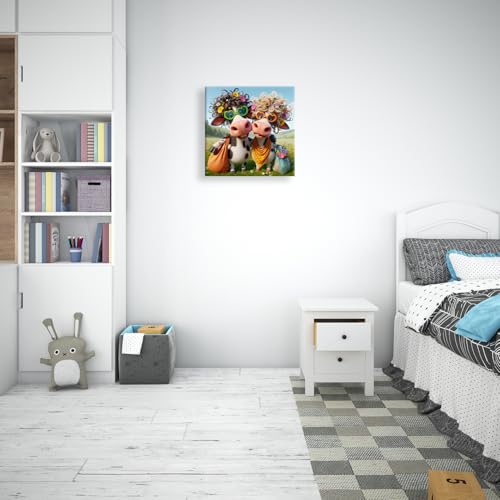 Nova Art - Nova Art Canvas Wall Art - Fashion Cows in a Blooming Meadow with Glasses and Funny Bags Wall Art for Bedroom Living Room Office Etc Modern Home Decor 30cmx30cm