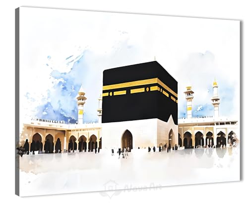 Nova Art - NOVA ART Canvas Wall Art Watercolor Sky Above Kaaba Middle Haram Kaaba Art Picture Modern Wall Decor for Bedroom Living Room Office Etc Modern Home Decor 30cm x 40cm