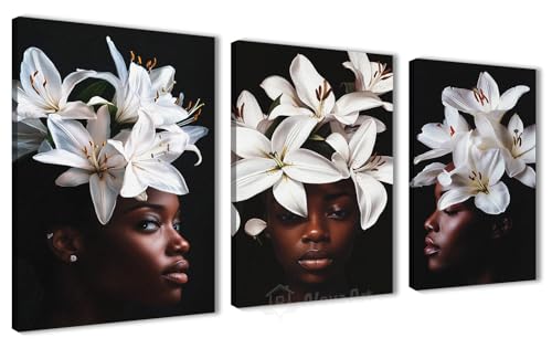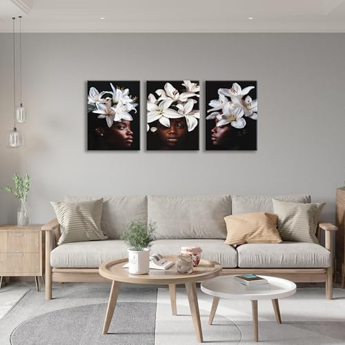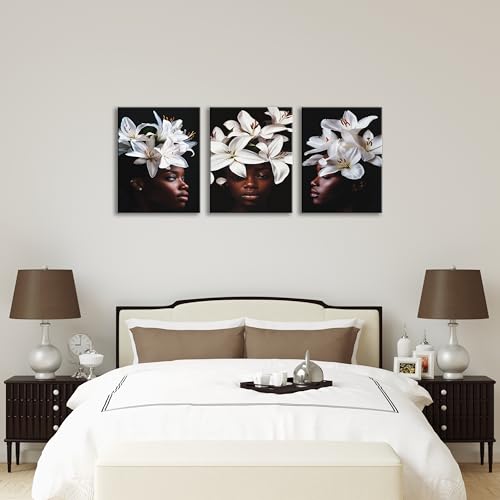Nova Art - NOVA ART Canvas Wall Art White Tulips Flowers on Black Background Fine Details Wall Decor for Bedroom Living Room Office Etc Modern Home Decor 30cm x 40cm x 3pcs