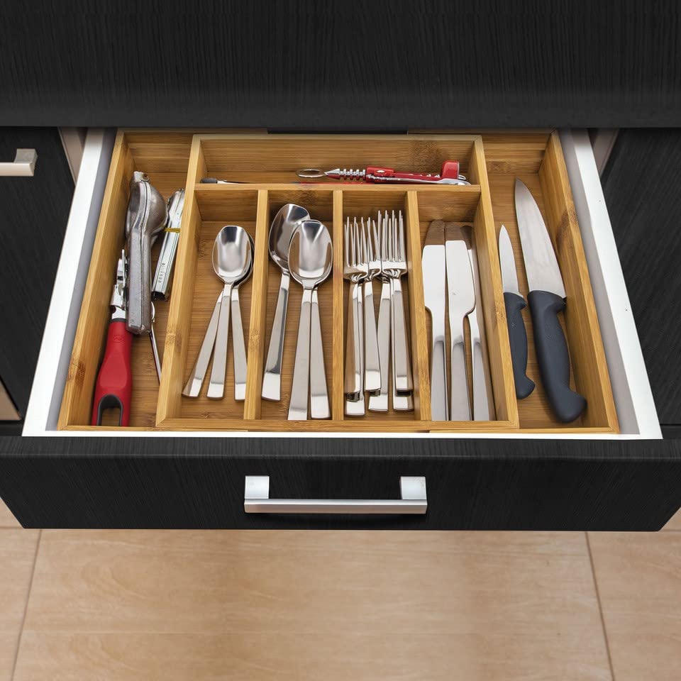 Noveltia - Noveltia Bamboo Expandable Silverware Drawer Organizer with 5-7 Compartments. Kitchen Cutlery Holder Storage Tray with Dividers for Utensils, Flatware, Office Supplies, Forks, Spoons, Jewelry