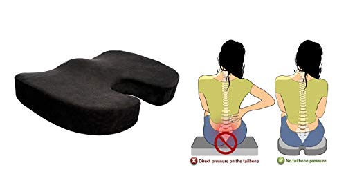 Spaceshoop - NOVIMED Coccyx Medical Orthopedic Memory Foam Seat Cushion With ANTI-SLIP Bottom For Sciatica,Low Back Pain,Herniated Disc,For Chairs,Travel Accessories-Gives Relief From Tailbone Pain