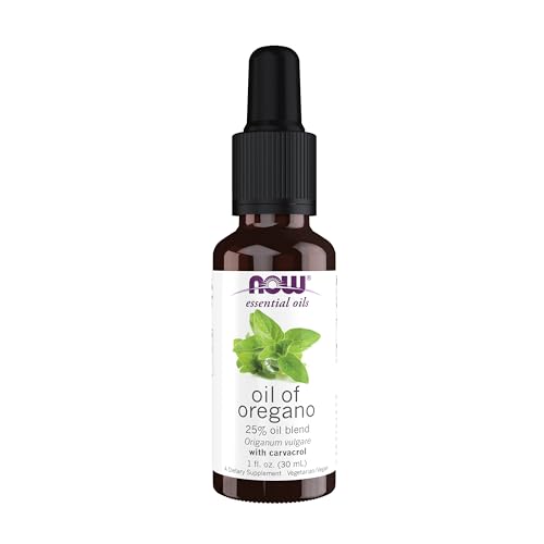 NOW - NOW Essential Oils, Oil of Oregano, 25% Blend of Pure Oregano Oil in Pure Olive Oil, Comforting Aromatherapy Scent, Steam Distilled, Vegan, Child Resistant Cap, 1-Ounce