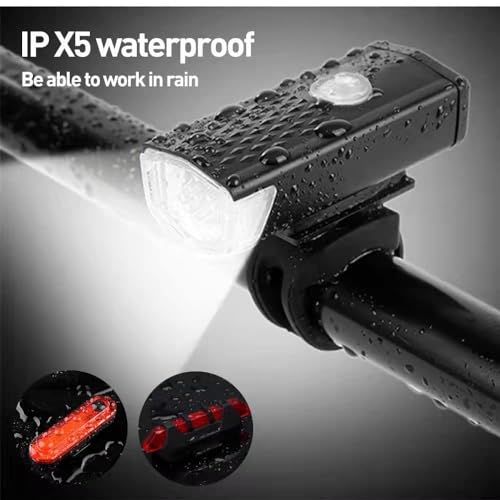 - Supper Bright Bike Lights】300 Lumens brightness offers up to 300M/984ft meters of visibility, giving you much more peripheral vision when riding. Our front light offers 2 modes (High/Low); Rear lights with 5 modes (Red - White - Flashing Red - Flashing White - Red and Flashing White