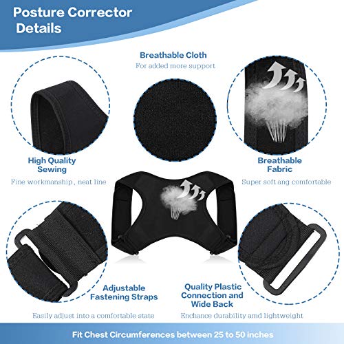 - مجموعة دعم وضعية الظهر المريحة: تحتوي العبوة على قطعتين من دعامات الترقوة التي تناسب محيط الصدر بين 25 إلى 50 انش؛ يمكنك تعديلها بنفسك بسهولة للحصول على حالة مريحة؛ ستمنحك دعامات الظهر العلوية للجنسين وضعية واثقة