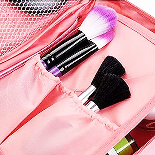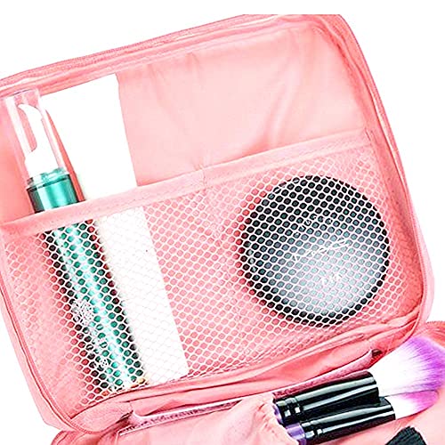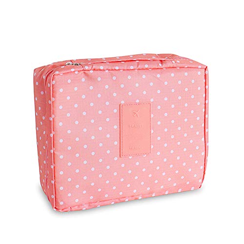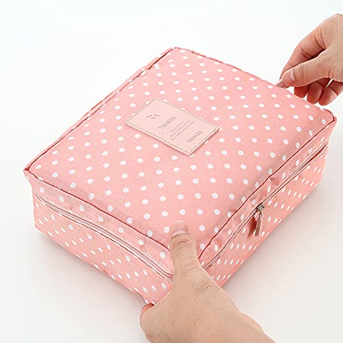 NuAngela - NuAngela Makeup Bag Cosmetic Train Case Travel Organizer Portable Storage Bag Toiletry Brush Zipper Pouch For Women and Men Waterproof With Adjustable Divers, Peach PInk Dot,