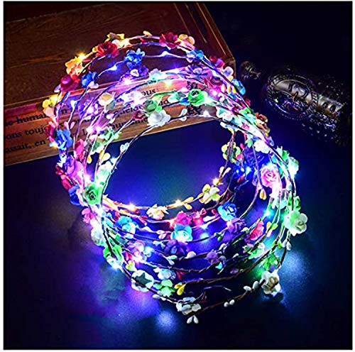 - 【تاج زهرة LED أنيق】 عبوة من 7 قطع من شريط الرأس على شكل زهرة وامضة ملونة. مواد يدوية ممتازة وأشرطة رأس على شكل تاج زهور مصنوعة بحرفية رائعة مزينة بـ 10 مصابيح LED، يبدو إكليل رأس الزهور رائعًا في الظلام وحقق نجاحًا كبيرًا.