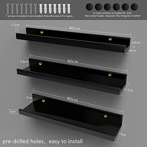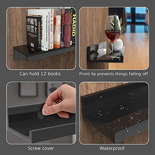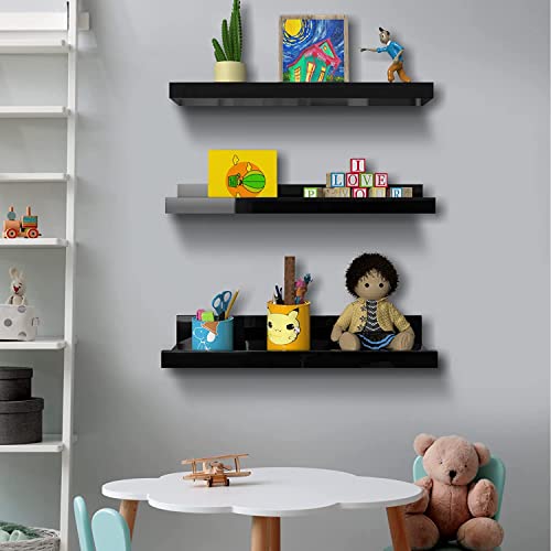 - Nunemosk Picture Shelf Ledge: Compare to the old horizontal shelves, these black floating shelves have a nice lip on the front which stops things falling off the front and books and photos can stand upright on shelves. these decorative shelf have many choice to put and they can be used together or separately in different rooms. These wood floating shelves decorate your wall and save floor space. They are strong and deep enough to hold stuffs.