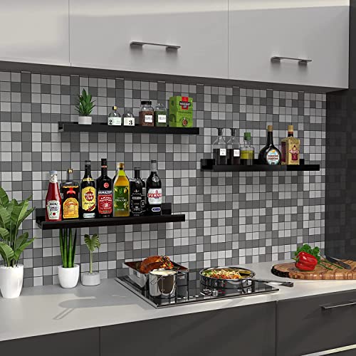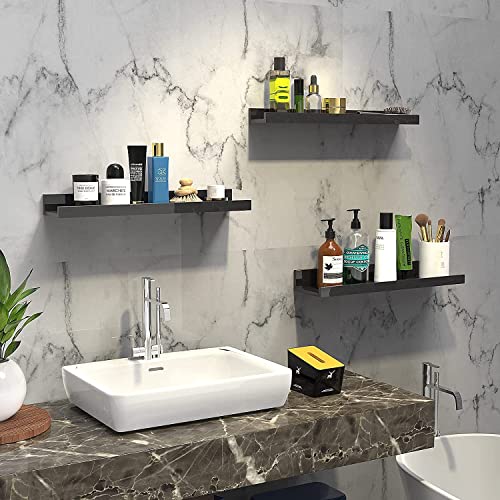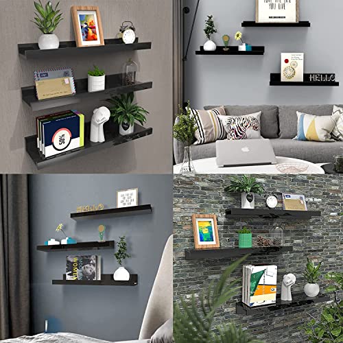 Nunemosk - Set of 3 Floating Shelves Wood Wall Mounted Shelf Picture Ledge Display Racks Spice Racks Decorative Wall Shelves for Bedroom Living Room Kitchen Home Office (Black Shelves)