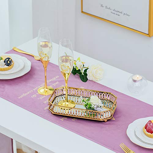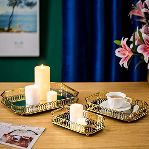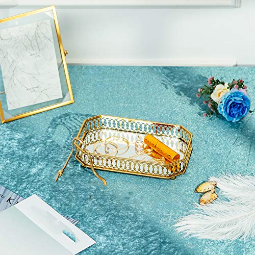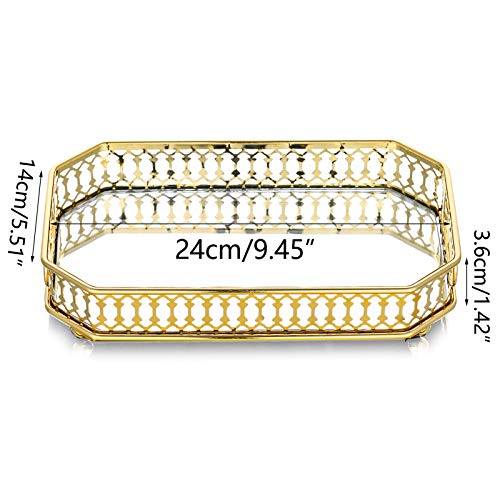 Nuptio - NUPTIO Mirrored Glass Make up Tray 24cm Length, Gold Rectangle Decorative Tray Candle Plate Jewelry Tray Storage Organizer Mirror Vanity Tray for Dresser Bathroom Bedroom Home Decor