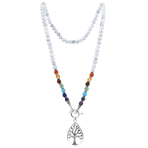 Nupuyai - Nupuyai CrystalPendant for Unisex, 7 Chakra Mala Healing Stone Necklace, Yoga Meditation Prayer Bracelet