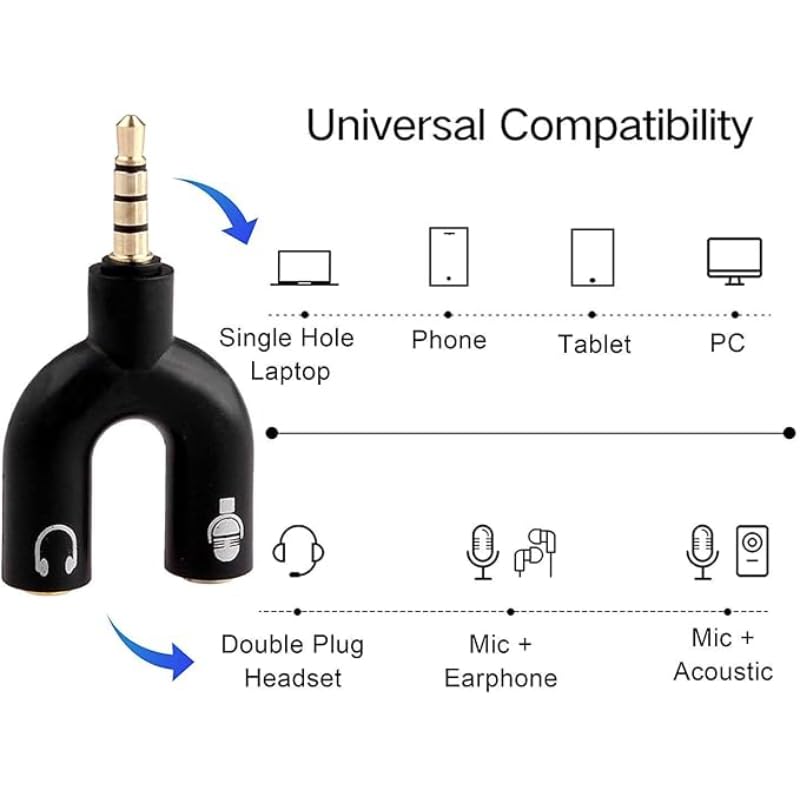 NuSense - NuSense U Shape Headphone Microphone Audio Y Splitter (3.5mm)