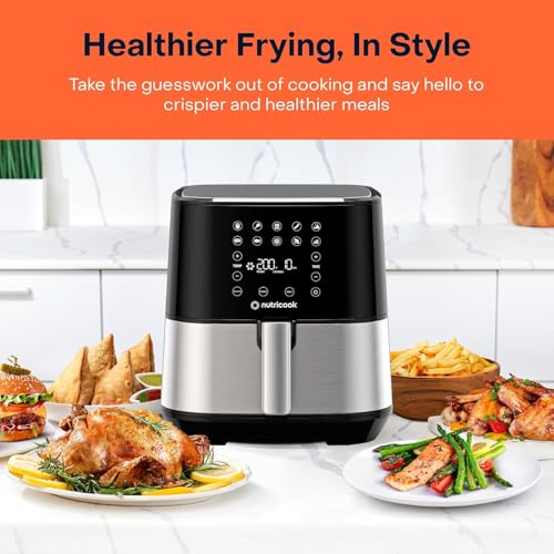 Generic - Nuttricook Air Fryer 2, 1700 Watts, Digital Control Panel Display, 10 Preset Programs With Built-In Preheat Function, 5.5 Liters, Brush Stainless Steel/Black, 2 Years Warranty, Af205