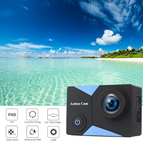 - Action Cam Ultra HD 1080P: the action camera can record videos with a resolution of the highest 1080P/30fps, shoots 12MP photos.