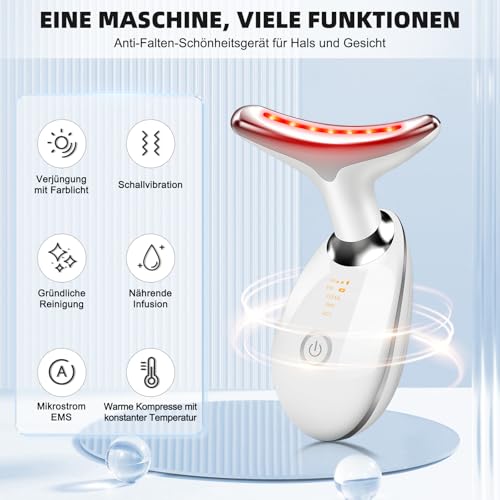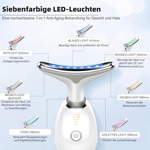 NVKHG - Face Massager Against Wrinkles, 7 Colours LED Light EMS Gua Sha Electric, 3 Mode Face Massager, Constant Heating to 45°C V Shape Face Device, Electric Face Massage, Facial Lift