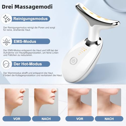 - 3 massage modes: face massager has 3 massage modes: CLEAN mode cleans pores and keeps the skin clean and radiant; EMS mode relaxes the skin and helps the skin absorb skin care products and reduce fine lines and wrinkles; HOT mode tightens loose skin, promotes collagen formation and rejuvenates the skin