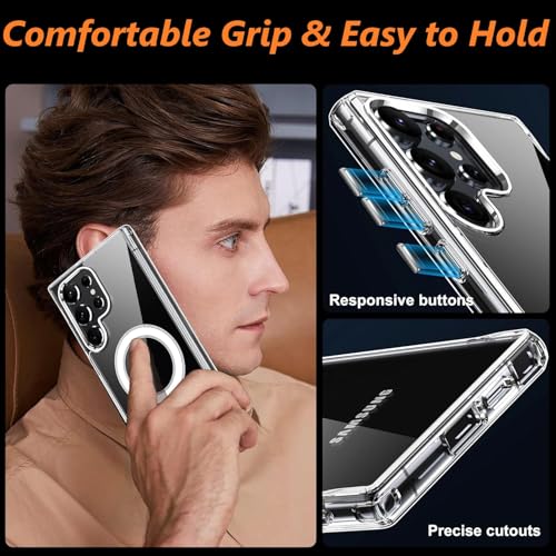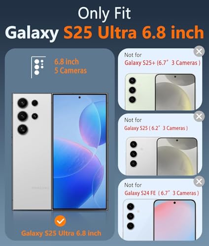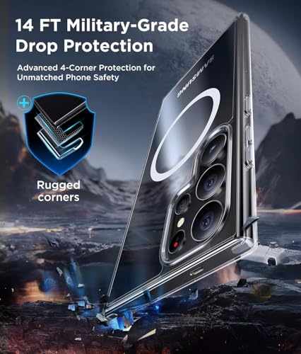 - [ممتص للصدمات] ظهر متين من السيليكون الصلب والبولي كربونات وممتص صدمات مرن من البولي يوريثين الحراري، يحمي غطاء الموبايل المغناطيسي هذا جهازك بفعالية من الخدوش اليومية والصدمات والسقوط العرضي لهاتف سامسونج S25 الترا.