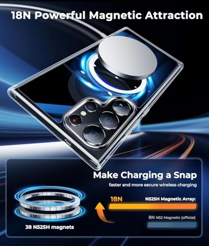NWNK13 - جراب مغناطيسي لموبايل سامسونج جالاكسي S25 الترا من ان دبليو ان كيه 13، متوافق مع ماج سيف، جراب حماية من السقوط بدرجة عسكرية، مضاد للصدمات لموبايل سامسونج S25 الترا، شفاف