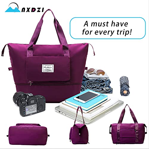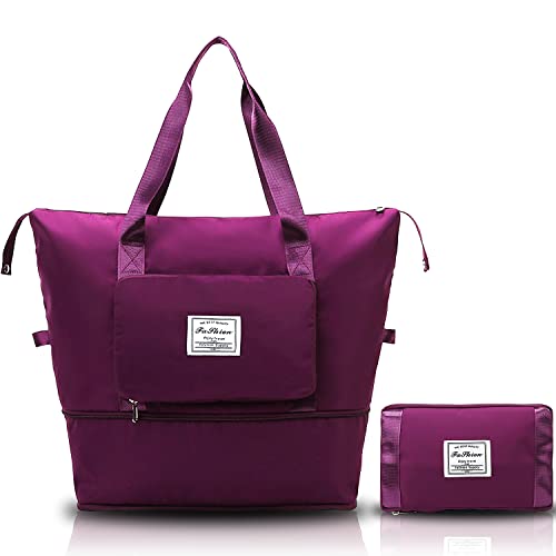 - ✈【FOLDABLE DESIGN】Our duffle bag multi-zone design can provide exclusive space for luggage. The foldie expandable tote bag have two zip pockets,two attached inside pockets as well as a wet pocket on the travel tote bag. Put the wet towel in the wet pocket of this travel duffel bag to keep other clothes dry. Greatly save space after folding, easily carry on your flight and travel after expansion.
