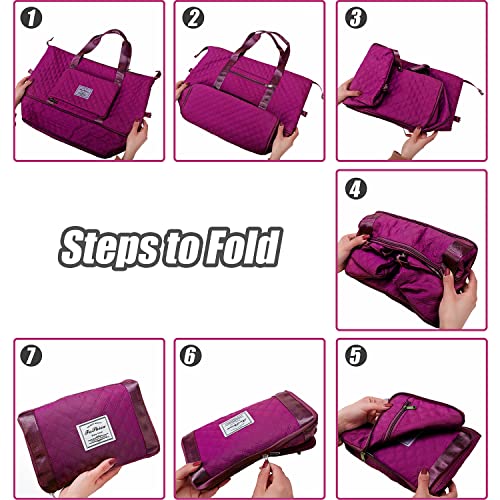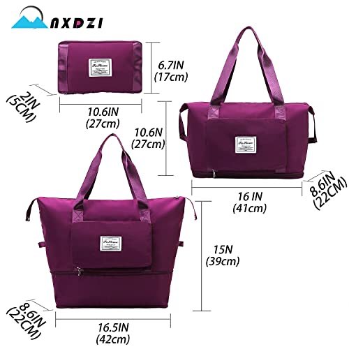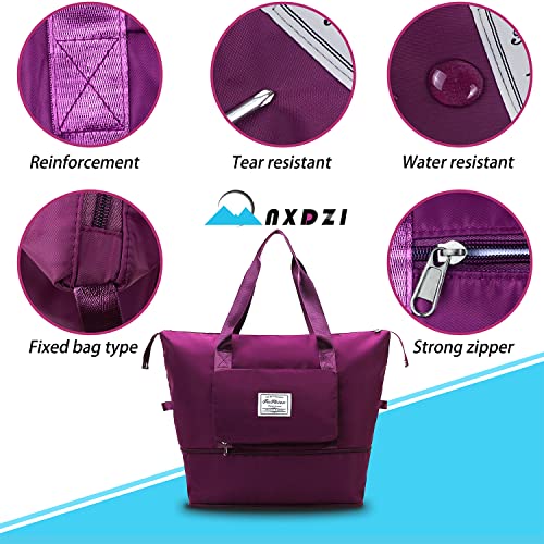 NXDZI - Folding Travel bag, Large Capacity Duffle Bag for Travel, Lightweight Waterproof Weekender Bags for Women, Expandable Weekender Carry On Overnight Bags, Fuchsia, A1, Fuchsia