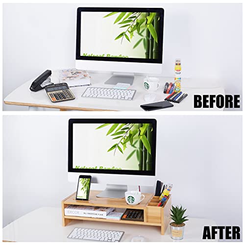 NXN-HOME - NXN-HOME 2-Tier Bamboo Monitor Stand | Wood Desk Organizers and Accessories | Laptop Computer Monitor Riser with Adjustable Storage Accessories