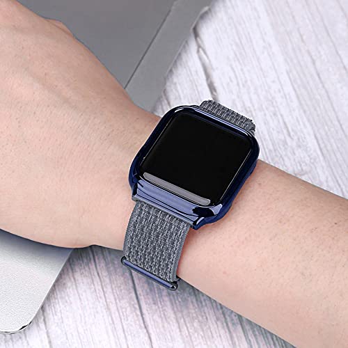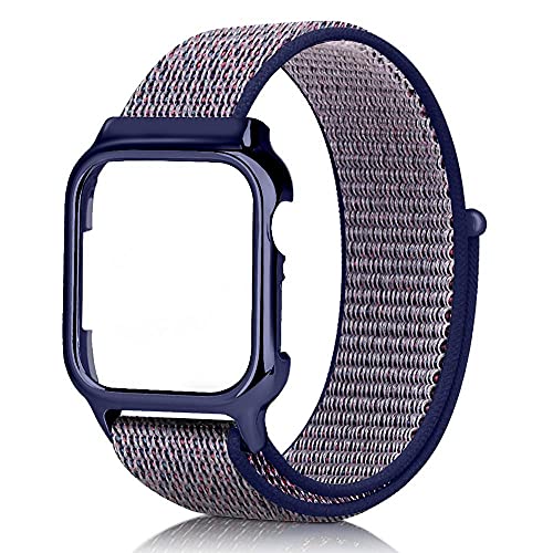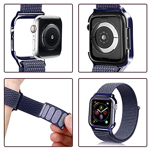 Generic - Nylon Loop Watch Band & Hard Case (44 mm) Sport Woven For Apple Watch Series 6/5/4/SE - Dark Blue x Grey