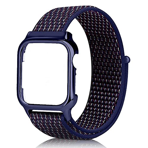 Generic - Nylon Loop Watch Band & Hard Case (44 mm) Sport Woven For Apple Watch Series 6/5/4/SE - Royal Blue