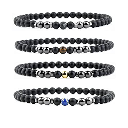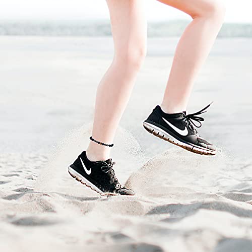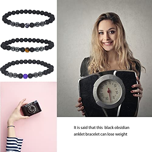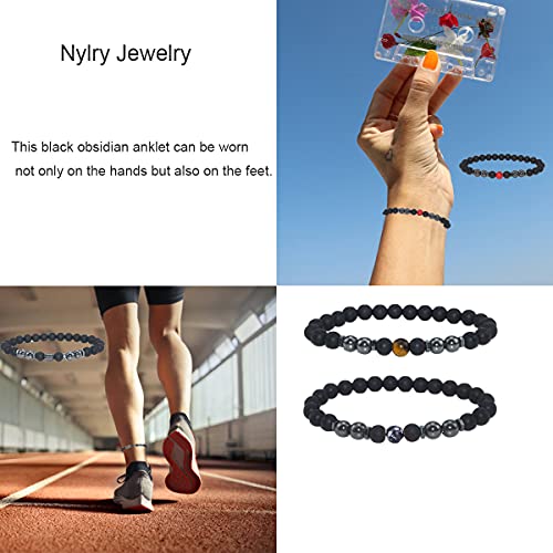nylry - 6PCS Black Obsidian Anklet Therapy Beaded Bracelet Anxiety Relief AnkletTiger Eye Stretch Anklet Yoga Chakra Ankle Bracelet for Men and Women, black obsidian, black obsidian