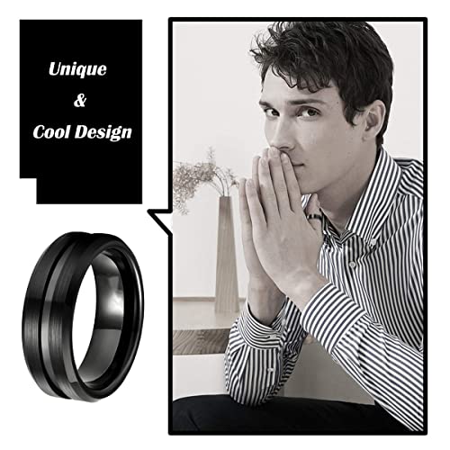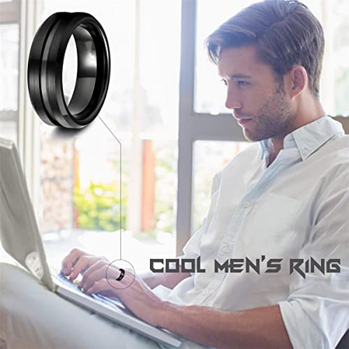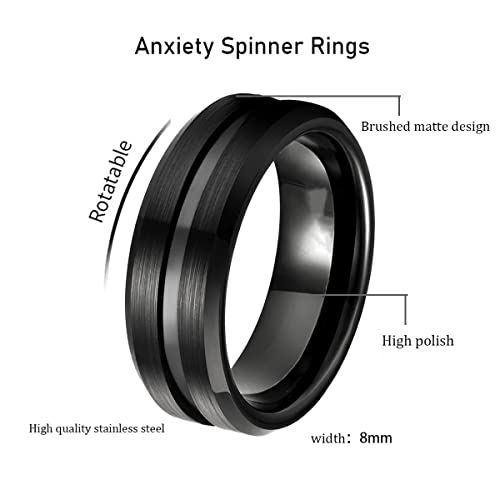 nylry - 8mm Spinner Rings for Men Stainless Steel Fidget Rings Spinner Rings for Anxiety Cool Black Chain Fidget Band Rings Relieving Anxiety Wedding Promise Ring Size 7 to 12, Metal, Agate