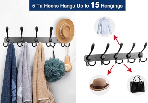 - 【5 TRI HOOKS DESIGN】NearMoon 5 tri coat hooks actually has 15 hooks(5 up+ 10 down), and 2 pack is 30 hooks. Perfect for space saving. And it has strong load-bearing capacity as it can hold up to 50lb of weight.