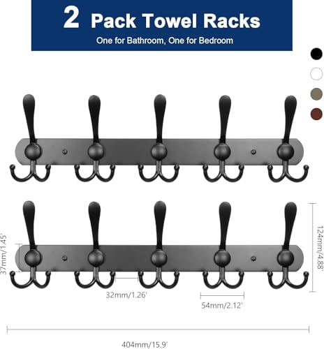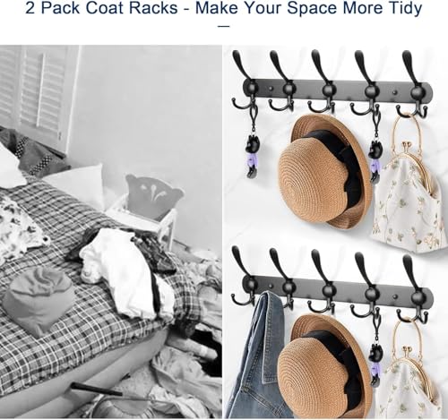 Nymmoata - Coat Rack Wall Mounted-2 Pack, Heavy Duty Bath Towel Hooks Stainless Steel Robe Hooks Holder, Metal Coat Hook for Towel Coat Hat Key Bathroom Bedroom Hotel Entryway (5 Hooks, Black)