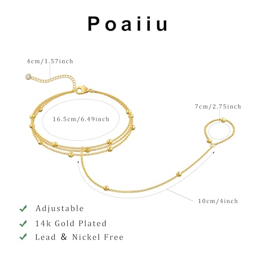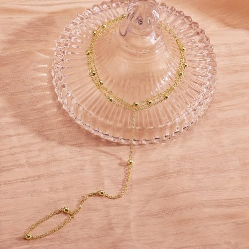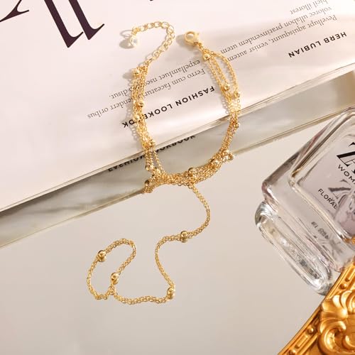 Nymora - Gold Bracelets for Women – Trendy Dainty Gold Hand Chain Bracelets, Stackable 14k Gold Plated Finger Ring Bracelet with Cz Flower Design, Layered Link Bracelets for Women